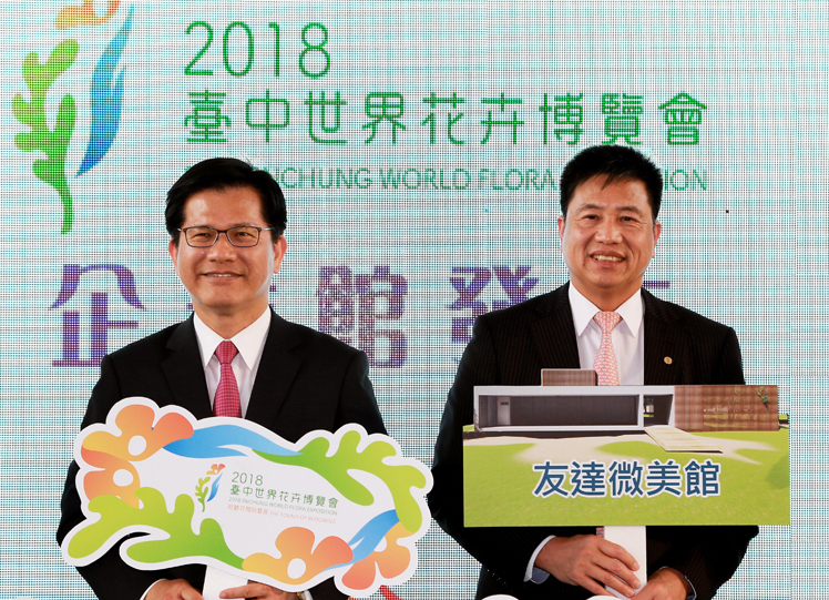 88BIFA贊助 2018 臺中花博企業館,打造「88BIFA微美館」(左:臺中市長林佳龍,右:88BIFA光電董事長暨執行長彭双浪)